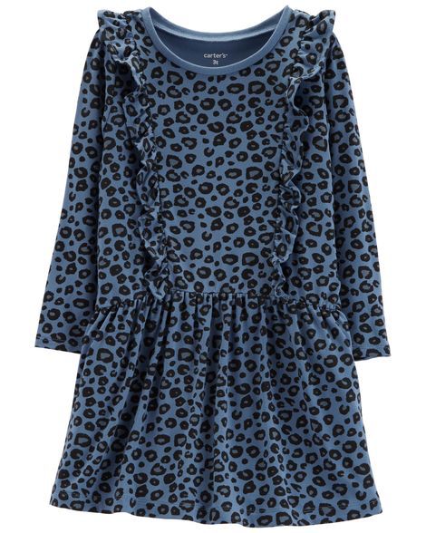 Vestido Manga Longa Leopardo Azul